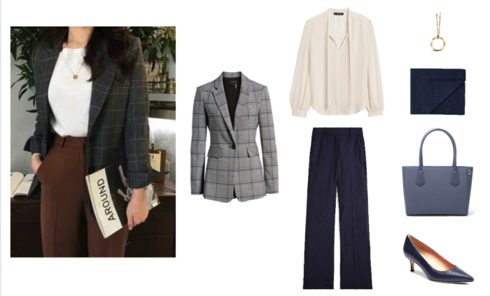 I added this lightweight cashmere scarf from Cuyana even though it wasn’t in the photo.   When it’s chilly out, but not cold, wearing an overcoat isn’t always necessary.  To layer up without being too hot, I add a scarf to my blazer.  For a less expensive option, try this Marks & Spencer scarf.