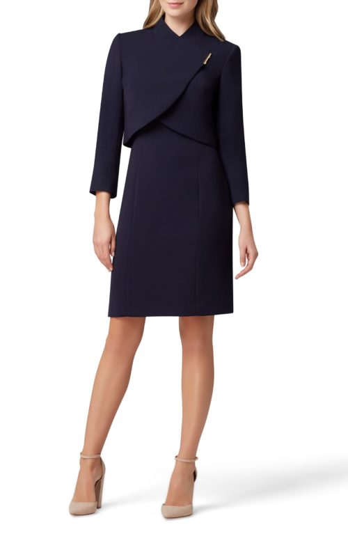 Business suits comprised of a dress and jacket have never been my favorite.  But this one, with a modern cut and a sleek look, is something different.  So let’s have a look.