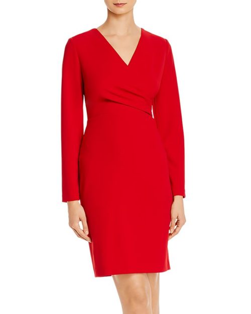 Looking for more mid-price red options? Donna Karan also makes this square neck dress with a shorter sleeve. And Hugo Boss made this ruched-side dress with a brushstroke print.