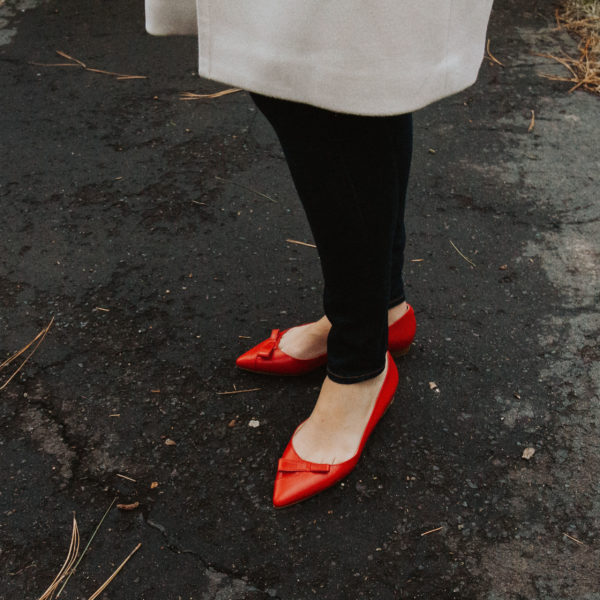 These Natalie leather flats with a sculpted bow are a great style for work or weekend. I chose the red because I wanted something impactful and versatile.