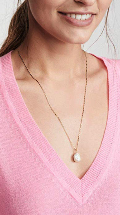 If you prefer a shorter pendant, try this smaller pearl pendant, also from Cloverpost.  It’s a fantastic piece for under-$50.  So is this Madewell layered necklace, that gives the pearl a relaxed vibe.