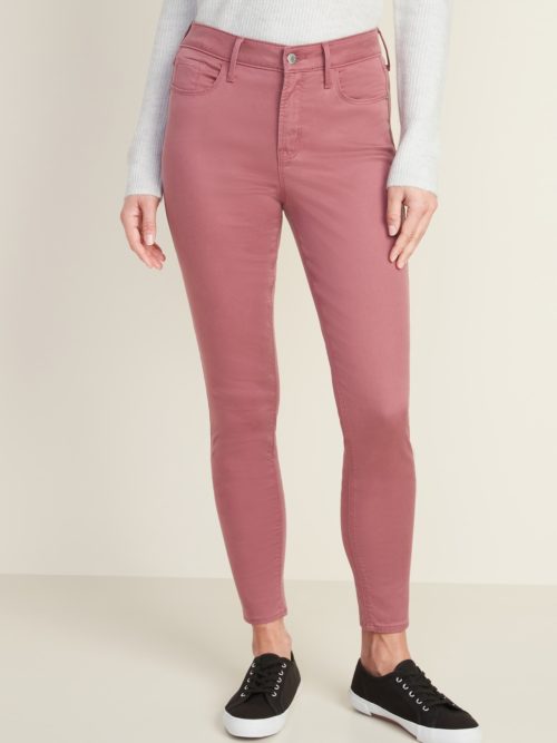 These high-waisted sateen Rockstar Skinny Jeans from Old Navy are some of my favorites. I like the sateen because it’s a bit more comfortable than the denim. They also come in a mid-rise.