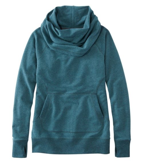 I don’t know what your weather is like, but ours is still chilly.  Freezing might be a better descriptor.  I have to layer up just to take the pups for a walk.  (They love shelter-in-place by the way; Avery’s lost five pounds.)  And this LL. Bean Cozy Pullover in spruce is one of my favorite pieces (also in plus and petite).