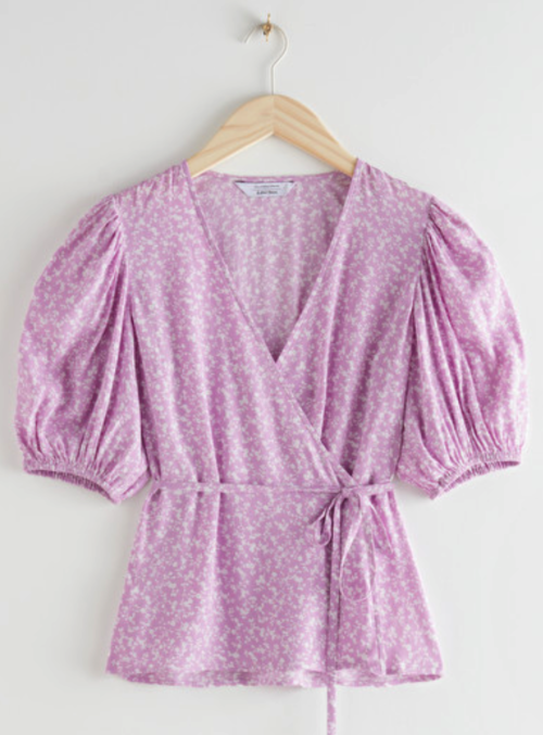 This puff-sleeve wrap top from & Other Stories might be the prettiest blouse ever. The gorgeous, understated floral, the summery lilac shade, and the flattering v-neck are really fab. It’s the kind of blouse that feels dressy without being dressy. And it’s under-$60, which is just the cherry on top.