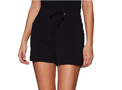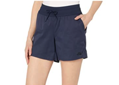 The North Face Aphrodite Shorts are my favorite. They have a 4″ inseam on the regular length, and 6″ on the longer length styles. They have a cinch-able waist band and pockets that actually hold things. Check the size guide to find your best fit. I have 38″ hips, and my sixes fit close to the body, while my eights are a bit breezier.