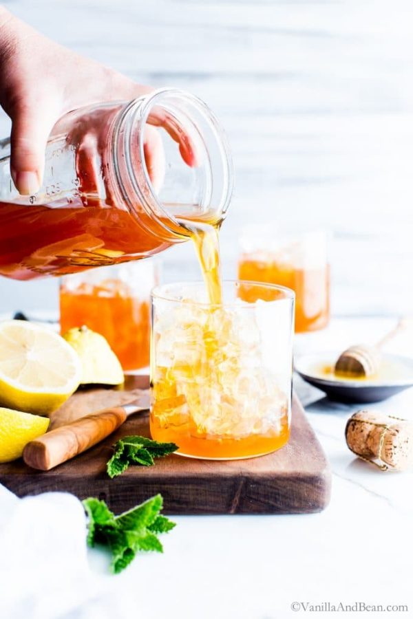 Vanilla and Bean’s Sweet Tea Prosecco Cocktails are simple, delicious and perfect for summer.  The cocktail is tea, honey, vodka, Grand Marnier, lemon and Prosecco.  A few more ingredients than I usually like, but it is so worth it.  And you can jazz it up by using different types of tea.