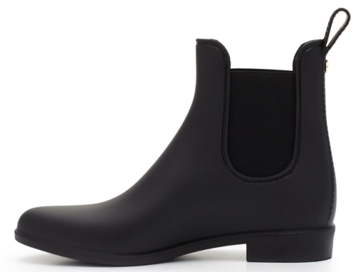 These Sam Edelman Tinsley Boots are the epitome of sleek and chic. The clean lines, small detail on the pull-tab, and flexible sides make it a stylish option for rainy days. Sizes run from 4-13, medium and wide widths. There is also a glossy option at Nordstrom Rack.