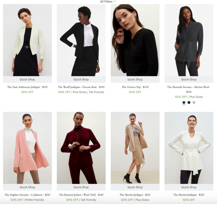 If you’re back at work or headed back in the near future, this is a good time to buy office attire.  They also have a lot of jumpsuits, relaxed pants and simple tops that you can wear comfortably while working from home.