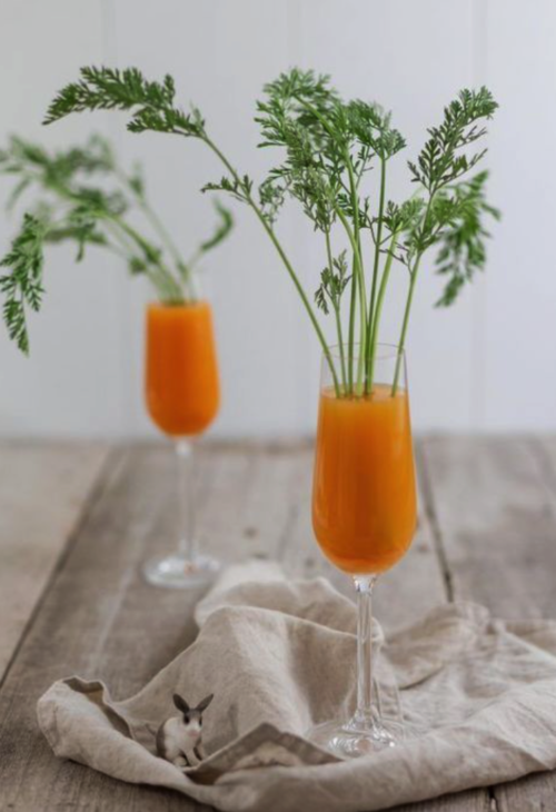 How adorable is this serving suggestion that I found on Pinterest?  A table of these parsley garnished carrot mimosas would be really cute at a family brunch.
