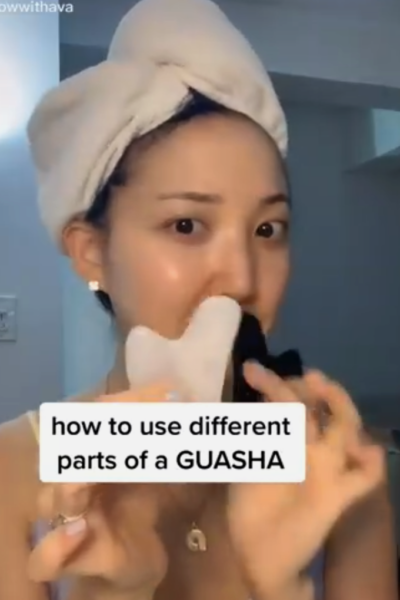 Guasha is a technique that involves scraping a stone tool over your face to improve circulation. I bought one of the tools months ago, but I didn’t know how to use it until I found this amazing TikTok.