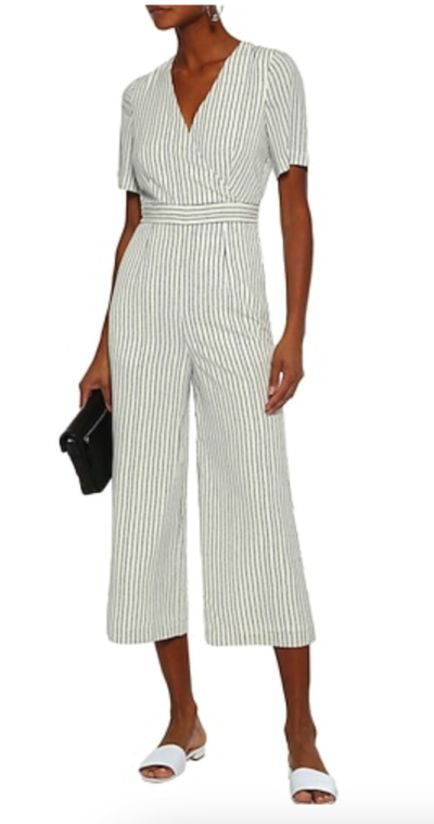 This striped one from Iris & Ink is very cute. I like the simple shape and the breezy feel. American Eagle also has an adorable striped jumpsuit in a wider, neutral stripe. And LOFT has this super beachy choice.