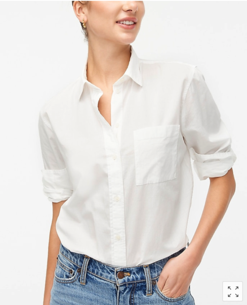 This J.Crew Factory High-Low Button-Up is a great option if you struggle to keep your shirt tucked in. It’s also a good choice for those who like a bit more rear-view coverage. It’s a little bit sheer, but by no means see through. Runs XXS to 3X.