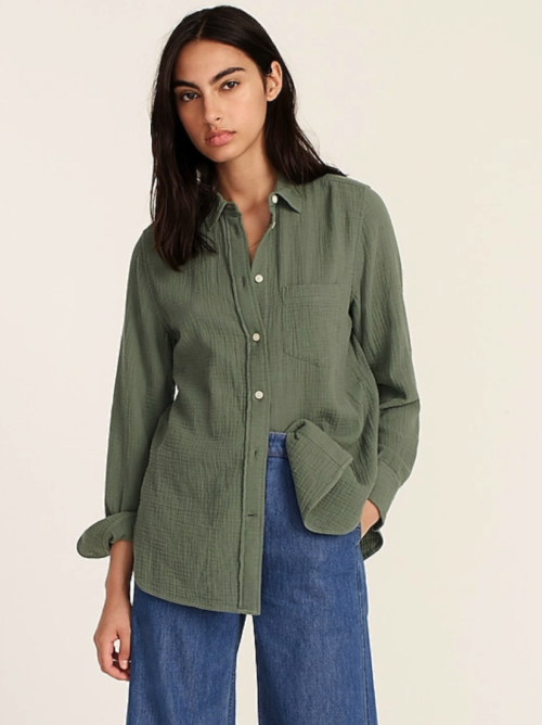 This Classic Fit Cozy Gauze Shirt looks like a great layering piece. The light weight fabric is nice for right now, and perfect under a sweater later. It comes in five colors, don’t miss the white and black.