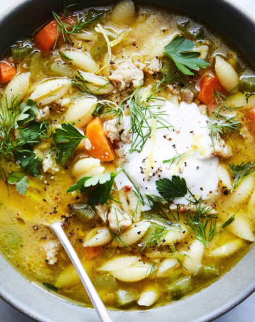 This Chicken Noodle Soup from Alexa Weibel uses ground chicken and whatever small noodles you have around. I love chicken noodle soup, but I never make it because it seems like a lot of work. This one seems easy, and looks delicious.