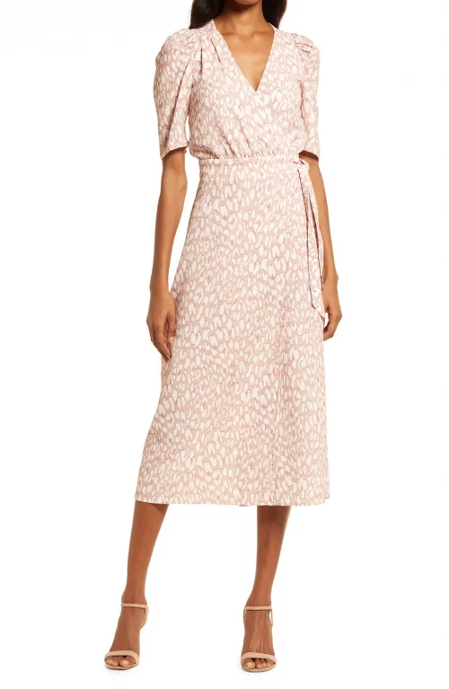 Now that the world has decided to reopen, I need a few dresses for nights out.  But I don’t want to cinch myself in to uncomfortable sheath dresses.  This wrap silhouette dress with a feminine print is everything I’m looking for.