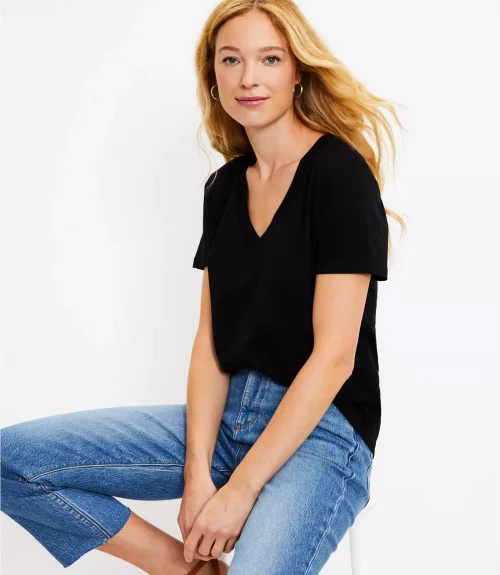 I was skeptical that this v-neck tee from LOFT would be as good as influencers claim. But I was wrong. It comes in a bunch of colors. Sizes run XXS to XXL. It’s also on sale.