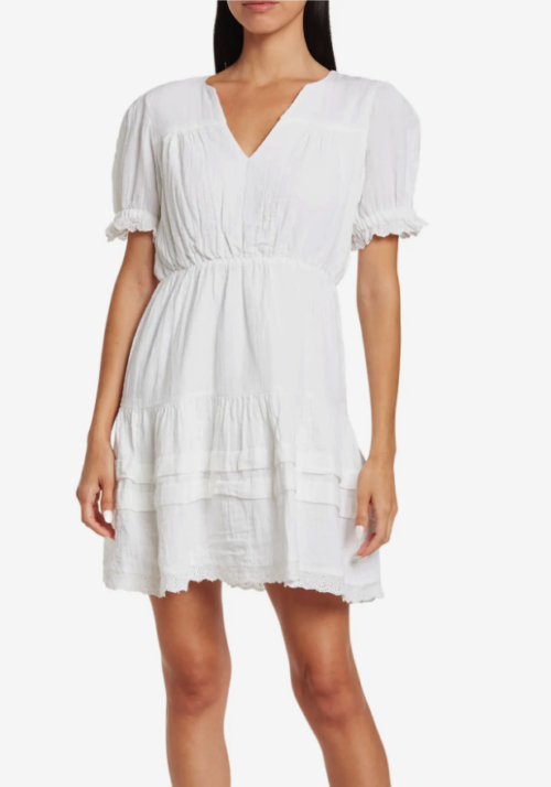 I adore this easy, breezy eyelet dress from Maisie. It comes in five colors. The white and pink are my favorites. It’s the perfect toss on dress to style for dinner, drinks, or just a backyard barbecue.