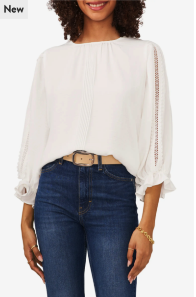 Being back in the office has been discombobulating for many of us. I have embraced a need for comfort, but still need professional attire. So no fancy sweatpants or nap dresses for me. Luckily, Vince Camuto always has work tops that are comfortable and look professional.