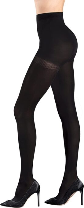 Curvy ladies, look at Berkshire’s line of Easy On! tights. Super easy to pull on, no pinching, comfortable all day. My favorites are the plush-lined 200 denier: