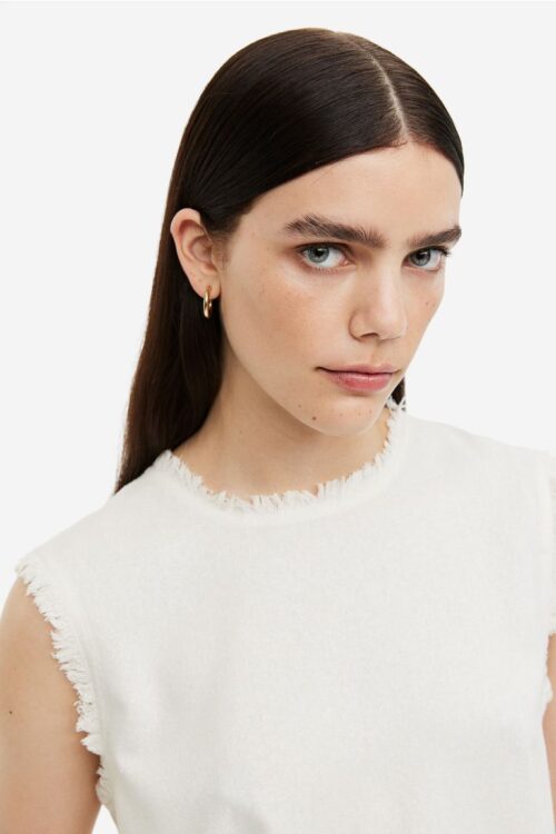 This Fringe Trimmed Silk Top is a basic with a fun detail on the collar, hem and sleeve.  And yes, the top is 100% silk, which justifies it’s slightly higher than usual price point for H&M.  Sizing runs XS to L.