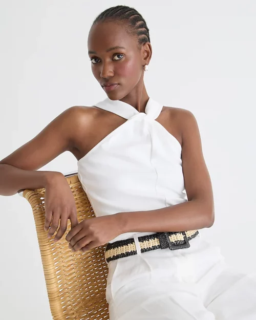 Other picks from the J.Crew sale?  This ruched, one shoulder swimsuit is fab.  This graphic tee is a cute option.  And if you are still looking for a summer tote, don’t miss this black and raffia striped bag.