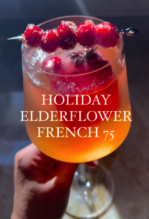 This Holiday Elderflower French 75 from @cheesegal has a lot of delicious ingredients. It’s also a festive drink to serve at any holiday party. To freeze the ice cubes, I recommend silicone molds, they just work better. If you want your cubes to be perfectly clear, boil the water first. And while I am happy to make some festive ice, I will not be sugaring cranberries for the top. This is a bridge too far. I’ll just buy some festive cocktail picks instead.