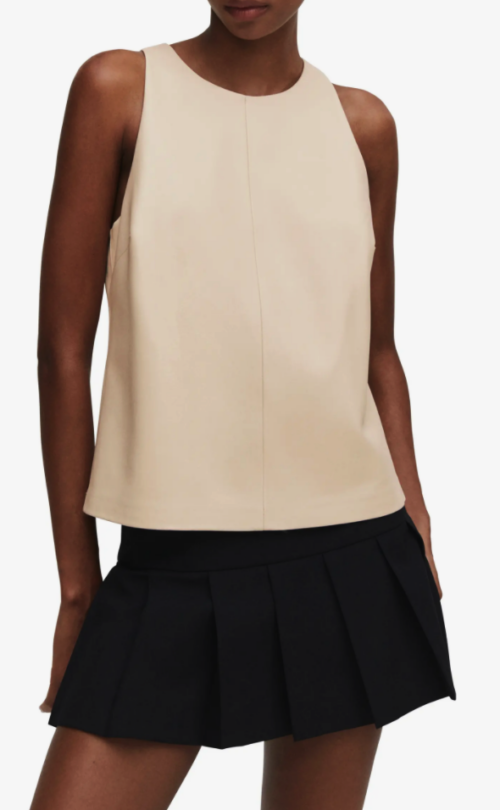 A different pick for me, but I like the look of this faux-leather top from Mango. It could be really fun tucked in into a high waist jean or pant with a blazer. I like the addition of a different texture in a neutral color. It may not be for everyone, but I’d be willing to give it a go.