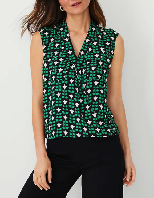If your work wardrobe consists of blazers and cardigans, a good selection of sleeveless blouses can carry your toppers further. Here are several that caught my eye, all under-$125.