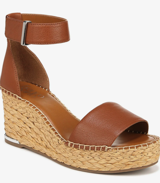 Espadrilles are the hot shoe of summer. These raffia-accented shoes are everywhere right now. This pair from Franco Sarto come in several color ways. They also come in wide widths. Plus, the 3.75″ wedge with a 1″ platform is surprisingly easy to walk around in.