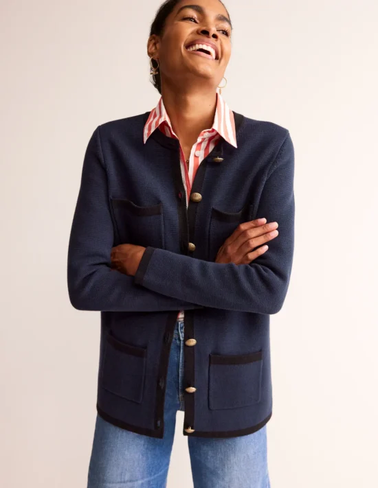 I own this cardigan, it’s one of my favorite pieces in my wardrobe. It layers over denim and a tee. You can wear it with black dresses. Try it with trousers and a blouse. Well-made, very versatile.