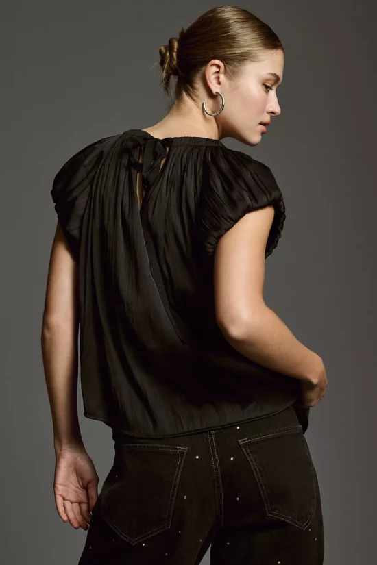 This bubble hem top is so chic. The pleated detail and the tie in the back make it a great top for post-work cocktail hour or a conference.