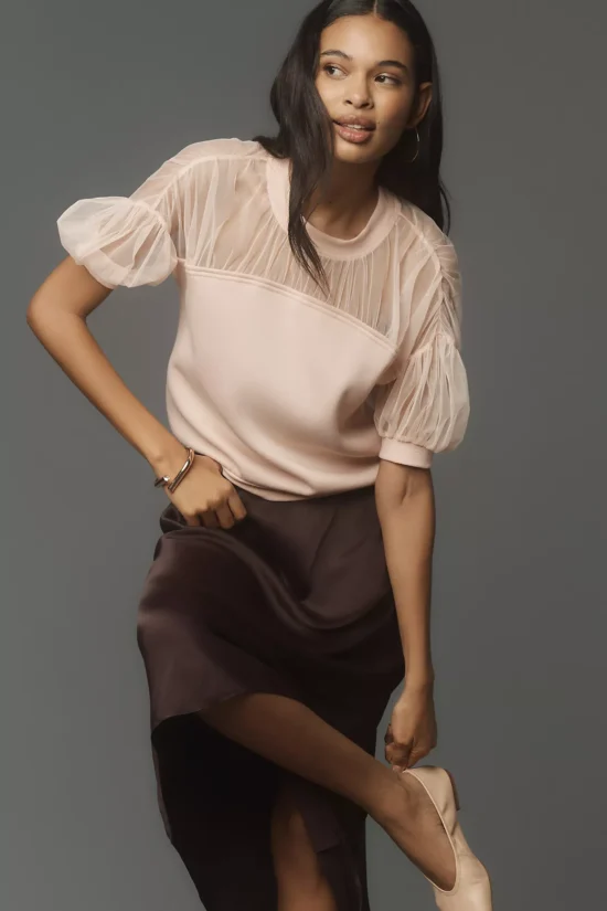 This Maeve top with sheer sleeves is the easiest to wear. I love the textured detail to give it a little something extra.