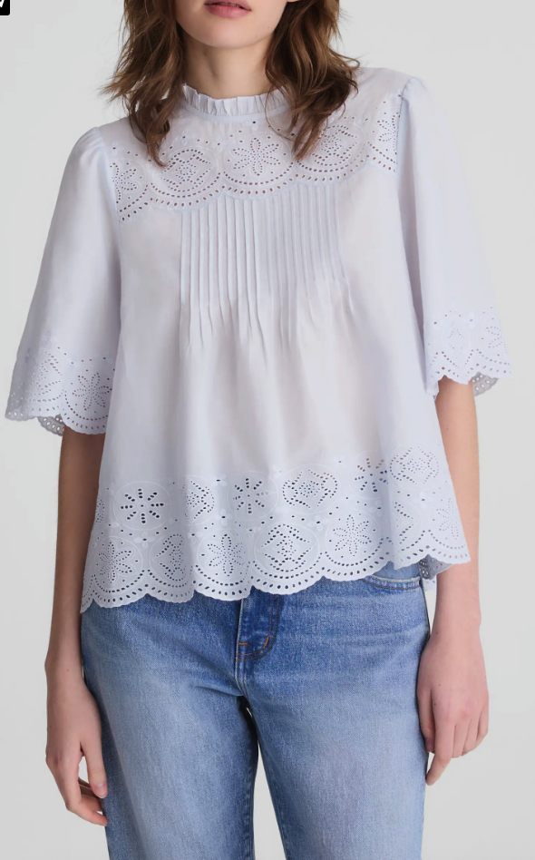 I bought this Madewell blouse in the soft blue. It is so pretty on with the eyelet trim and the pin tucks. But it runs big, even though it is supposed to be flowy. I bought the M originally, rough. Once I exchanged it for the small, the top went from being a tent from being cute and relaxed.